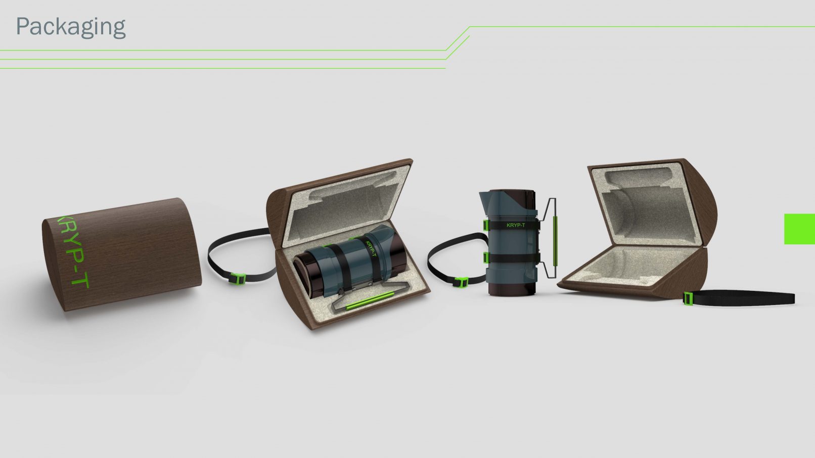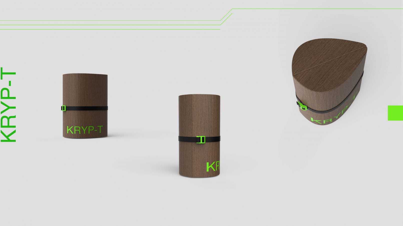 Das Design ist von kryptischem Graffiti inspiriert und in seiner Form vereinfacht worden. Kryp-T ist ein Tee-Set speziell für Menschen, die ihre Zeit mit Freunden in der Urbanen Welt erleben. Das Set enthält 2 Tassen, eine Kanne mit 0,5 l Fassungsvermögen, eine Thermoskanne (0,5 l Fassungsvermögen), zwei Kork Untersetzer für die Tassen, eine Tee-Dose und ein Teesieb. Zum Transport des Sets schützt eine mit grauem Filz gedämmte Holz-Box.