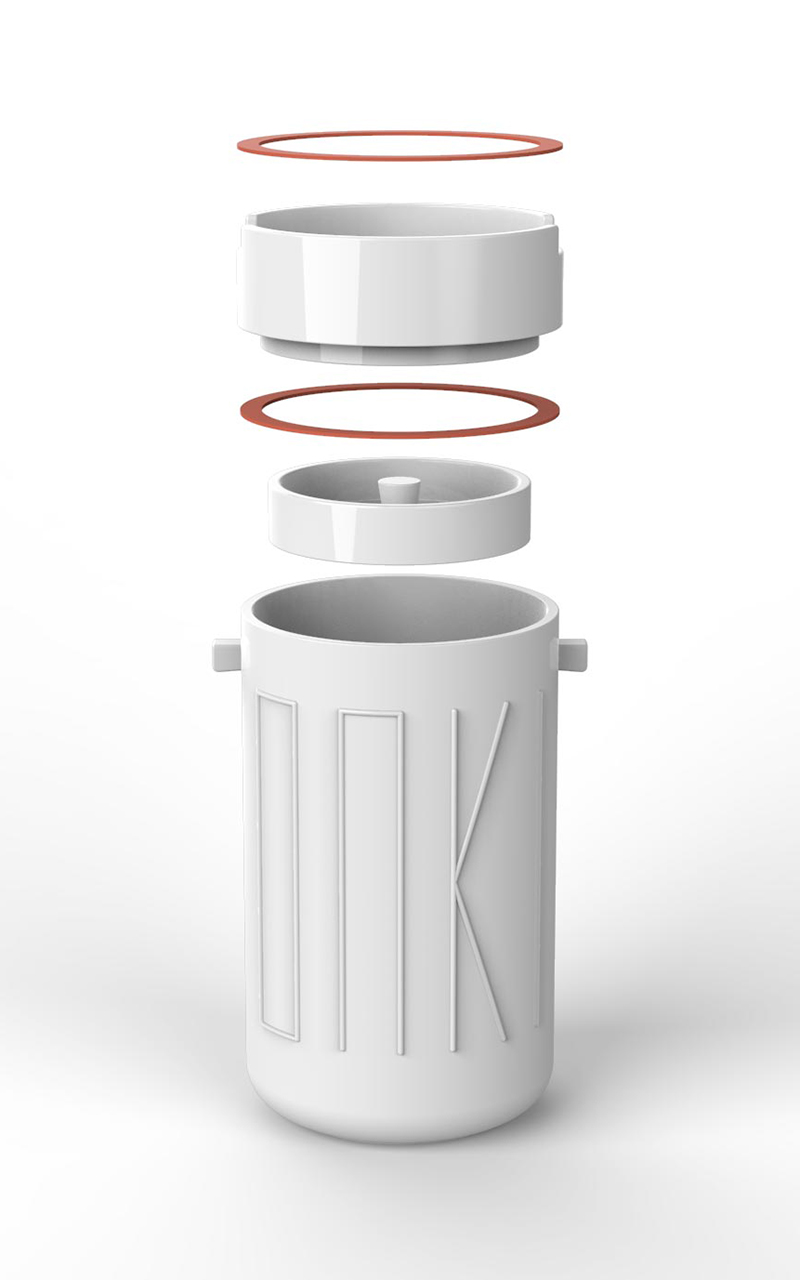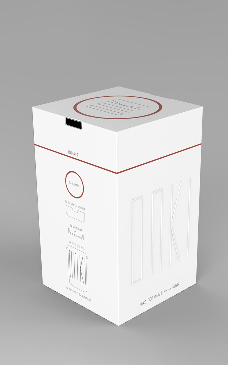 ONKI dient primär zur Fermentation. Die mit diesem Vorgang einhergehenden chemischen und physikalischen Prozesse, sowie eine einfache Handhabung, haben die finale Formfindung maßgeblich beeinflusst. Darüber hinaus ist ONKI abseits der Fermentation vielseitig einsetzbar. Der Korpus kann zum Beispiel als Aufbewahrungsgefäß und der Deckel als Schale genutzt werden. Eine Verpackung inkl. Gebrauchsanleitung runden das Fermentier-Set ab.