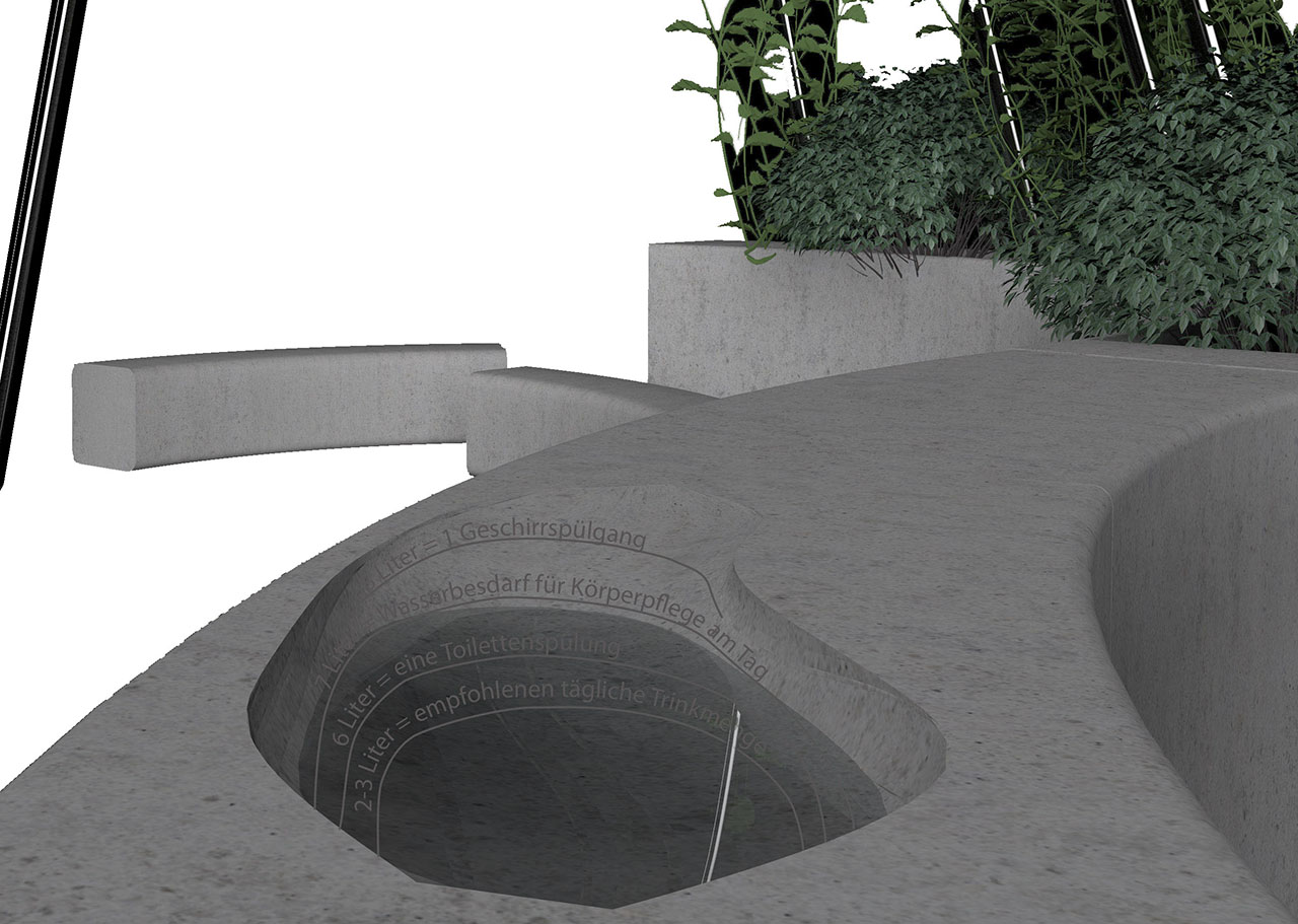 Abgeleitet von den ersten historischen Treffpunkten, den Brunnen, schaffen wir einen öffentlichen Treffpunkt.