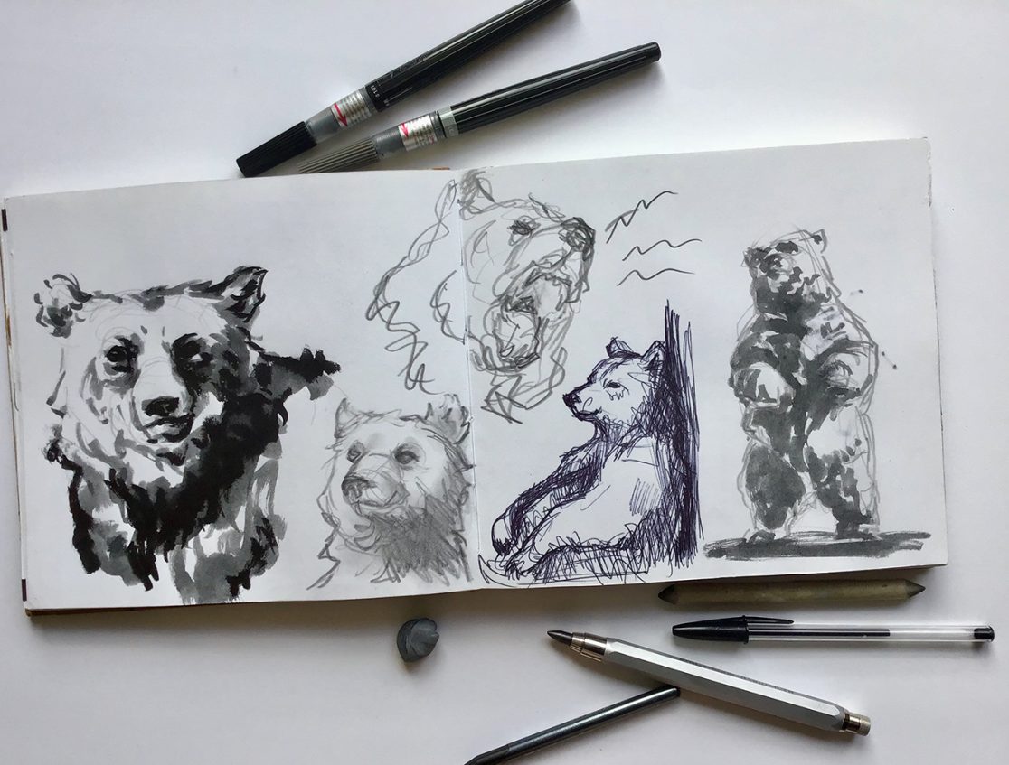 Das habe ich mir zum Anlass genommen, mit diversen analogen, aber auch vermehrt mit digitalen Zeichenwerkzeugen zu experimentieren. Von Bleistiftzeichnungen über Kulikritzeleien und Kohleskizzen bis hin zu Aquarellen sind einige Arbeiten mit dabei, bei derer Entstehung ich neue Herangehensweisen erproben konnte.